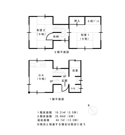 延べ床面積 44.7u(13.5坪)